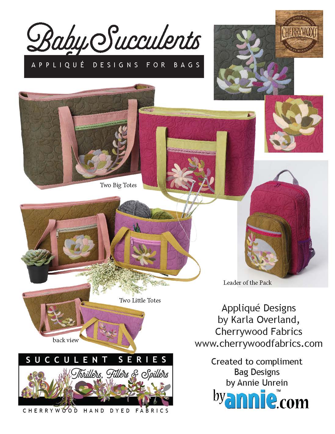 Annie Unrein of ByAnnie.com created these AMAZING bags using tiny versions of our succulent patterns!